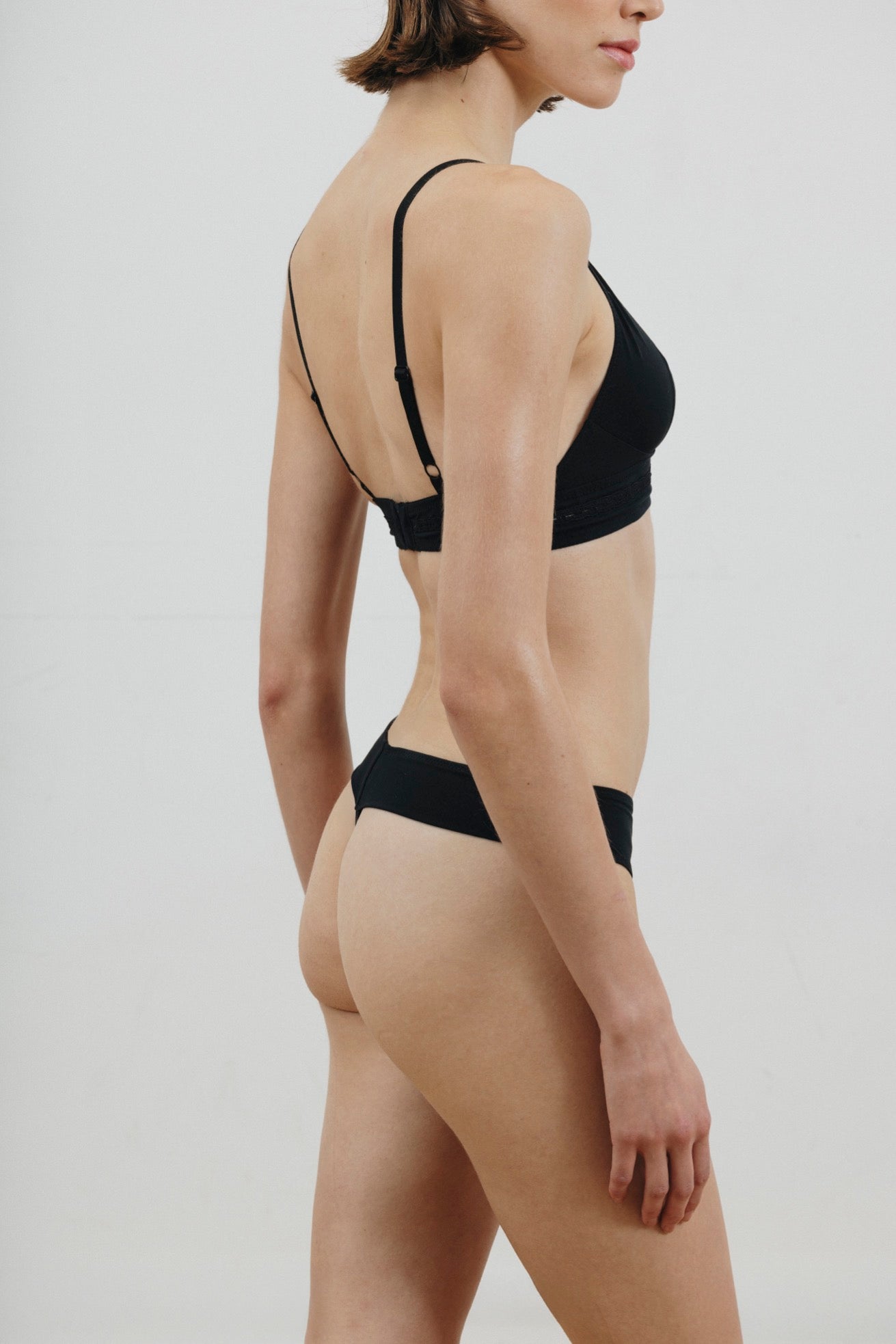 Lightweight and smooth against the body, these thongs are a mid-rise bottom made from ultra fine gauge knit for soft comfort. With a wide stretch band for ease, the modal thong features a modern trim detail at the center, while a 100% cotton lining ensures breathability.